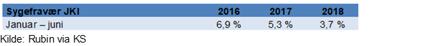 Sygefraværet på JKI er siden 2016 faldet fra 6,9 % til 3,7 % i 2018 i 1. og 2. kvartal. Dette er lavere end sygefraværet for hele BIF, der i perioden er på 4 %.