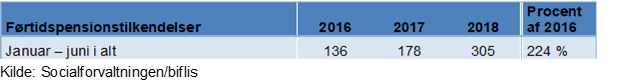 Antal borgere, der har fået tilkendt førtidspension, sammenlignet med samme periode i 2016 og 2017.