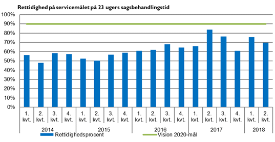Figur 1: Oversigt over rettidighed på servicemålet på 23 ugers sagsbehandlingstid