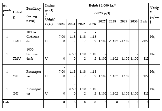 Tabel 1. Bevillingsmæssige konsekvenser af optagelse af to interne lån på samlet 13,5 mio. kr.