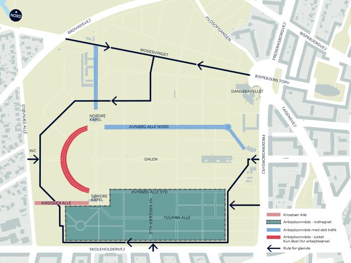 Der er fortsat adgang til alle gravsteder i anlægsperioden, men enkelte steder skal man benytte alternative adgangsveje. Følg skiltningen på kirkegården.