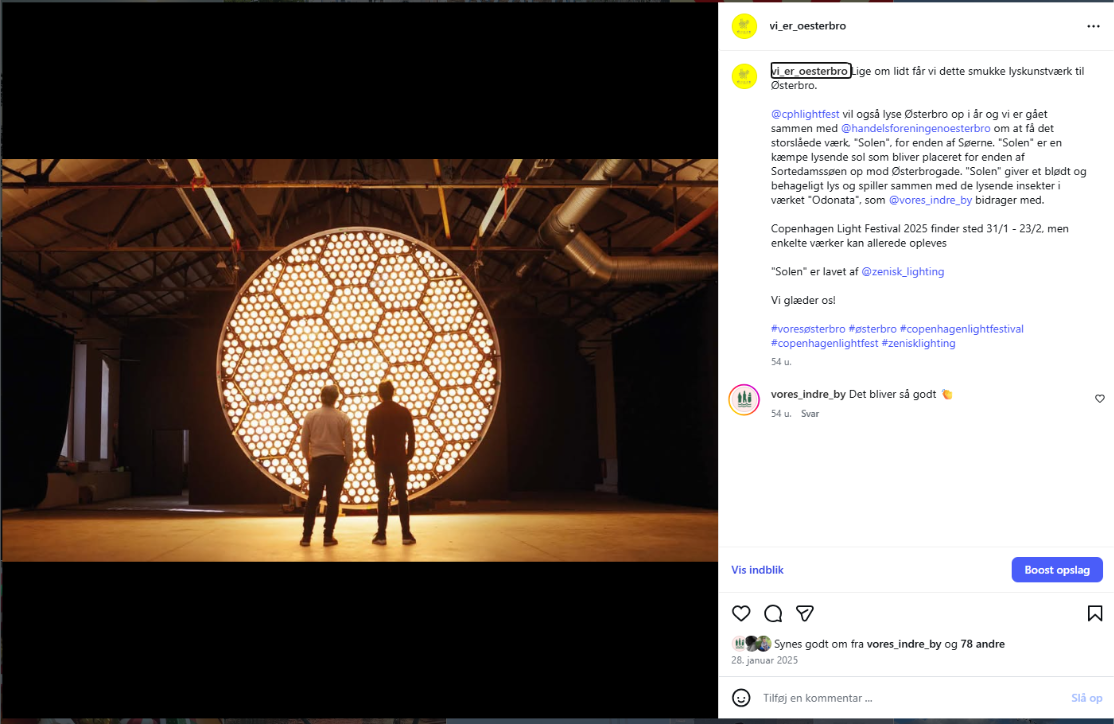 I stories bliver også opslag fra samarbejdspartnere delt, så som miljøpunktet og enkelte aktører, der har fået støtte til projekter i Østerbropuljen.
