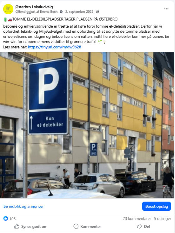 Københavns Kommunes Facebook-side. Københavns Kommune er nogle gange medarrangør på lokaludvalgets facebookbegivenheder, og andre gange laver de opslag om ØLUs arrangementer.