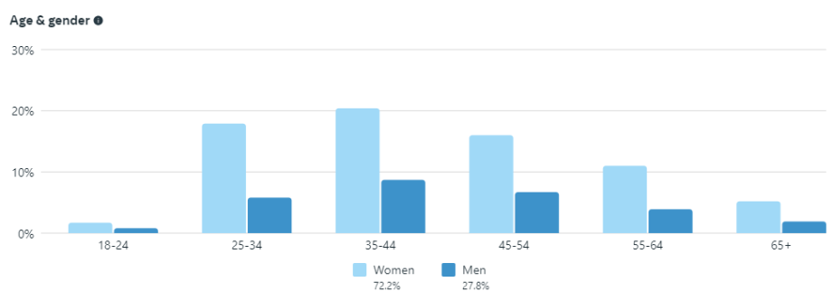 Brugere af Facebook generelt er først og fremmest personer i alderen 30-60+. Østerbro Lokaludvalg når langt flere kvinder end mænd og næsten ingen følgere er i aldersgruppen 18-24 år.
