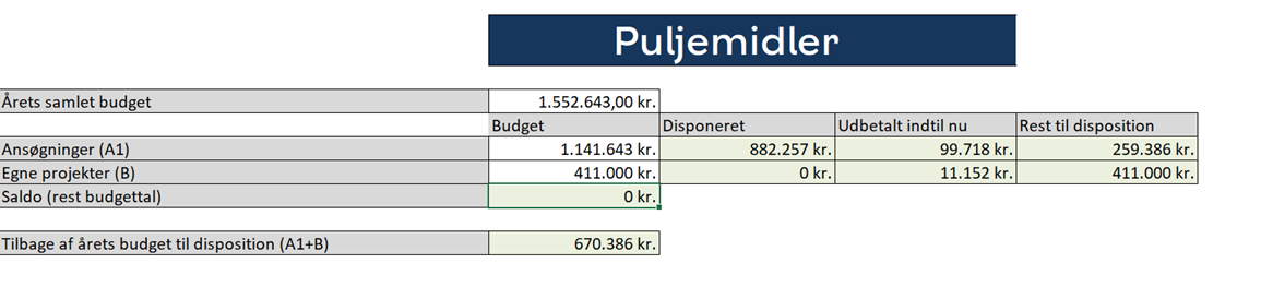 Der er derfor aktuelt 1.141.643 kr. budgetteret til puljeansøgninger i 2026.