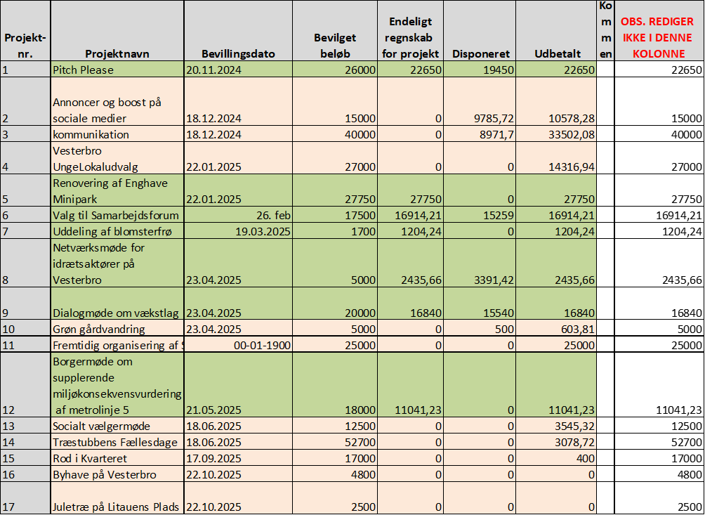 - Vesterbro Lokaludvalg tager status på puljemidler til efterretning.