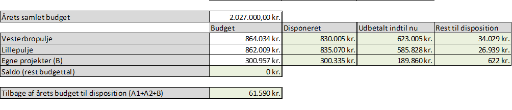 Samlet oversigt over lokaludvalgets puljemidler. Tallene er aktuelle pr. 8. december 2025.