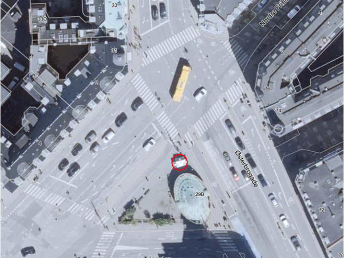Placering på Østerbrogade ved Trianglen
