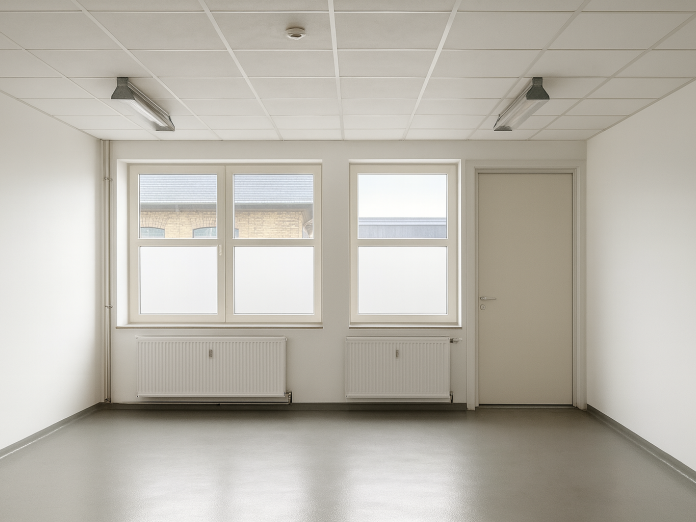 Dette typiske Kødby-lejemål er kendetegnet ved klassiske fliser og skrå sheds-vinduer, der er en karakteristisk detalje i industribygninger.