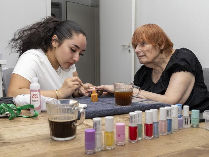 ”Inge og jeg ordner altid negle. Hun bestemmer farver, længden og om der er skal være et mønster på neglene. Jeg tror, at Inge nyder at træffe sine egne valg, når vi laver negle. Der er ingen forventninger til hende, hun skal bare være sig selv”, fortæller Manuelle, der læser til Pædagogisk Assistent på SOSU-H og som har været frivillig siden marts.